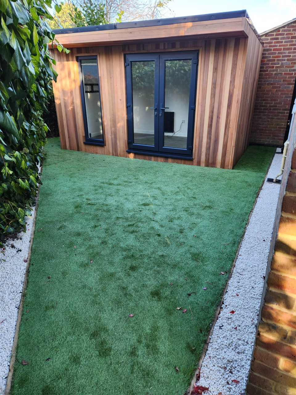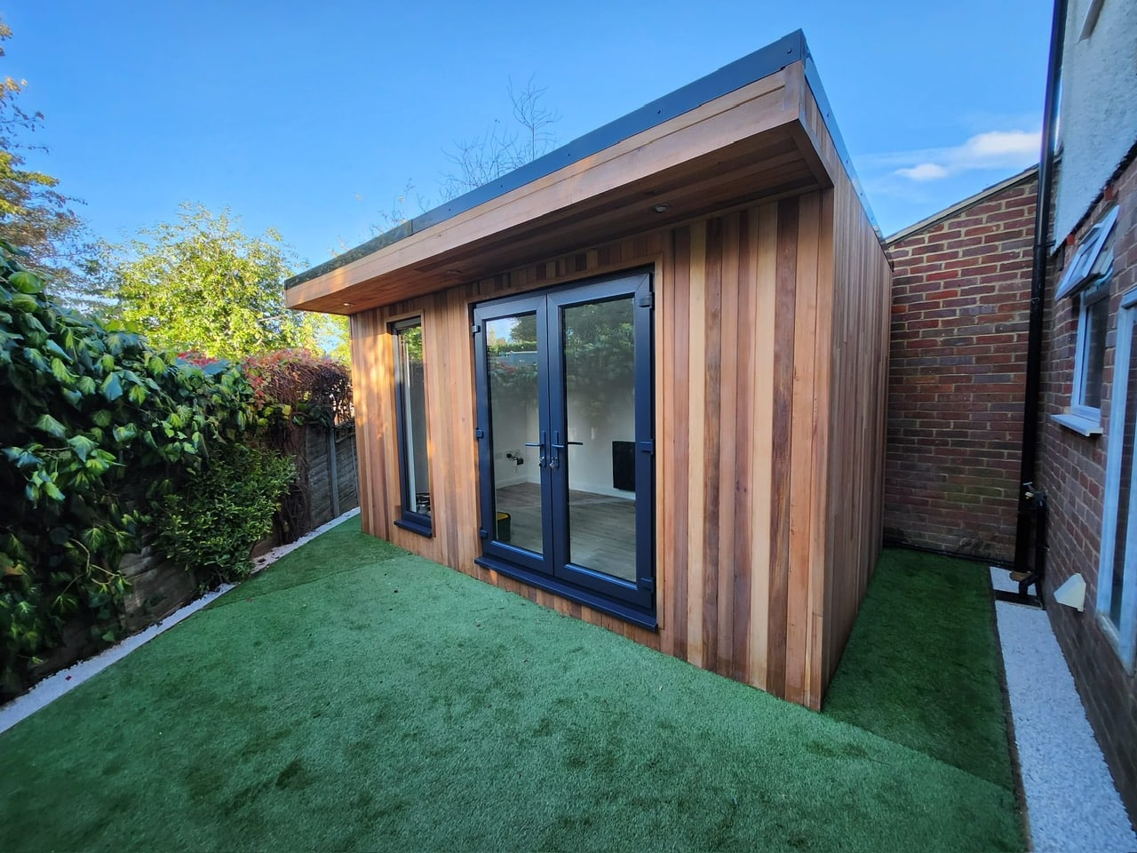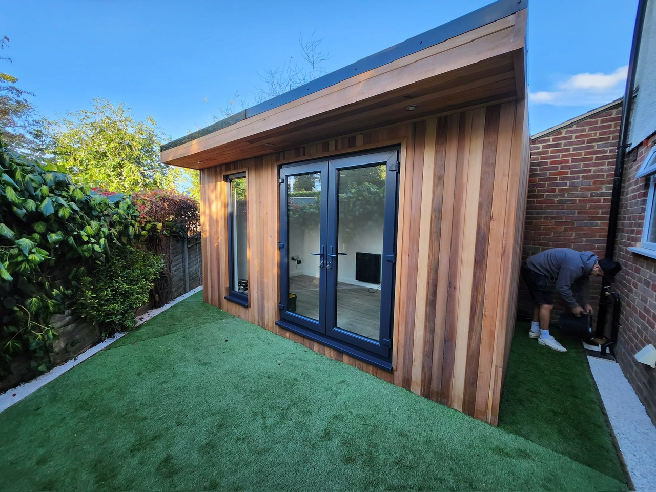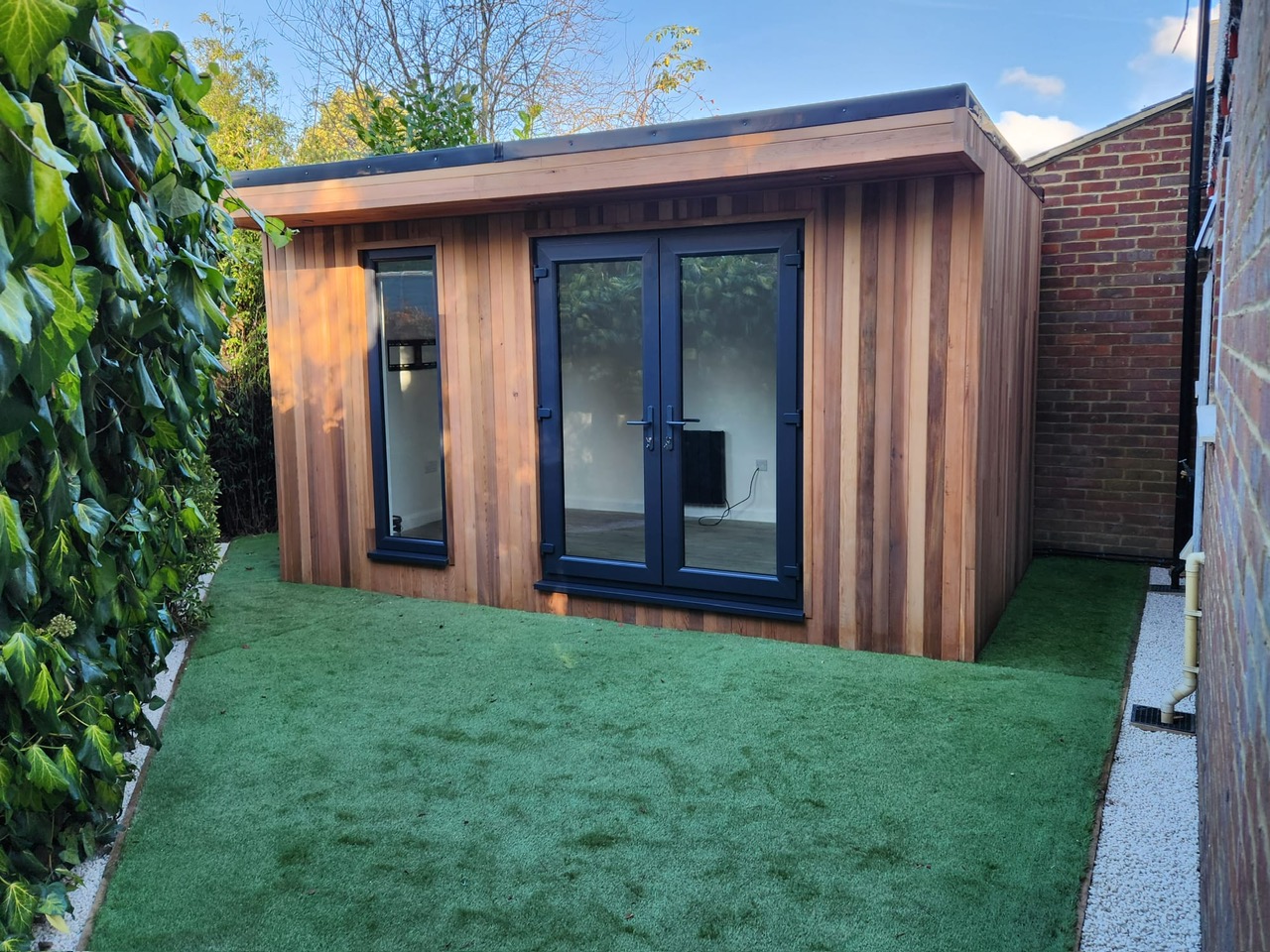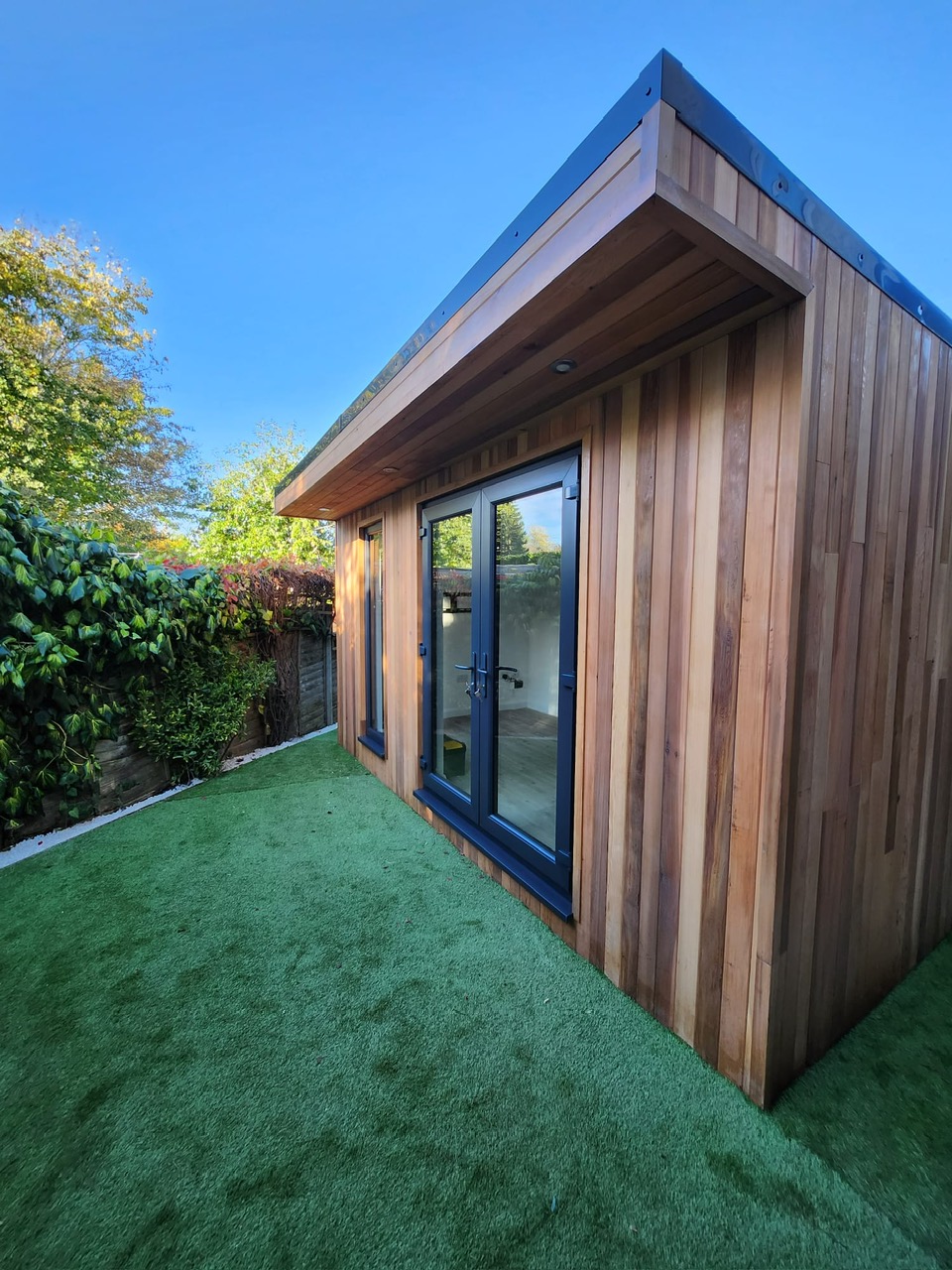 Another Fantastic SiRi Bespoke Garden Room…Finished in Canadian Cedar externally, complemented with a set of French Doors and Vision Panel. Consists of Full Electrics, Lighting & WiFi. Usage - Office & Social